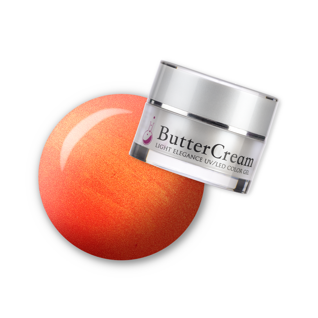 A high-intensity, bright coral base infused with a brilliant, luminous gold shimmer. A truly commanding shade!